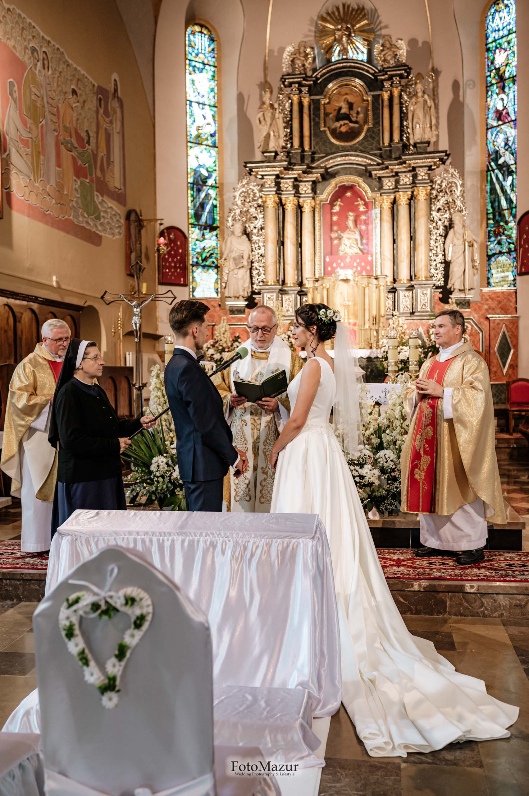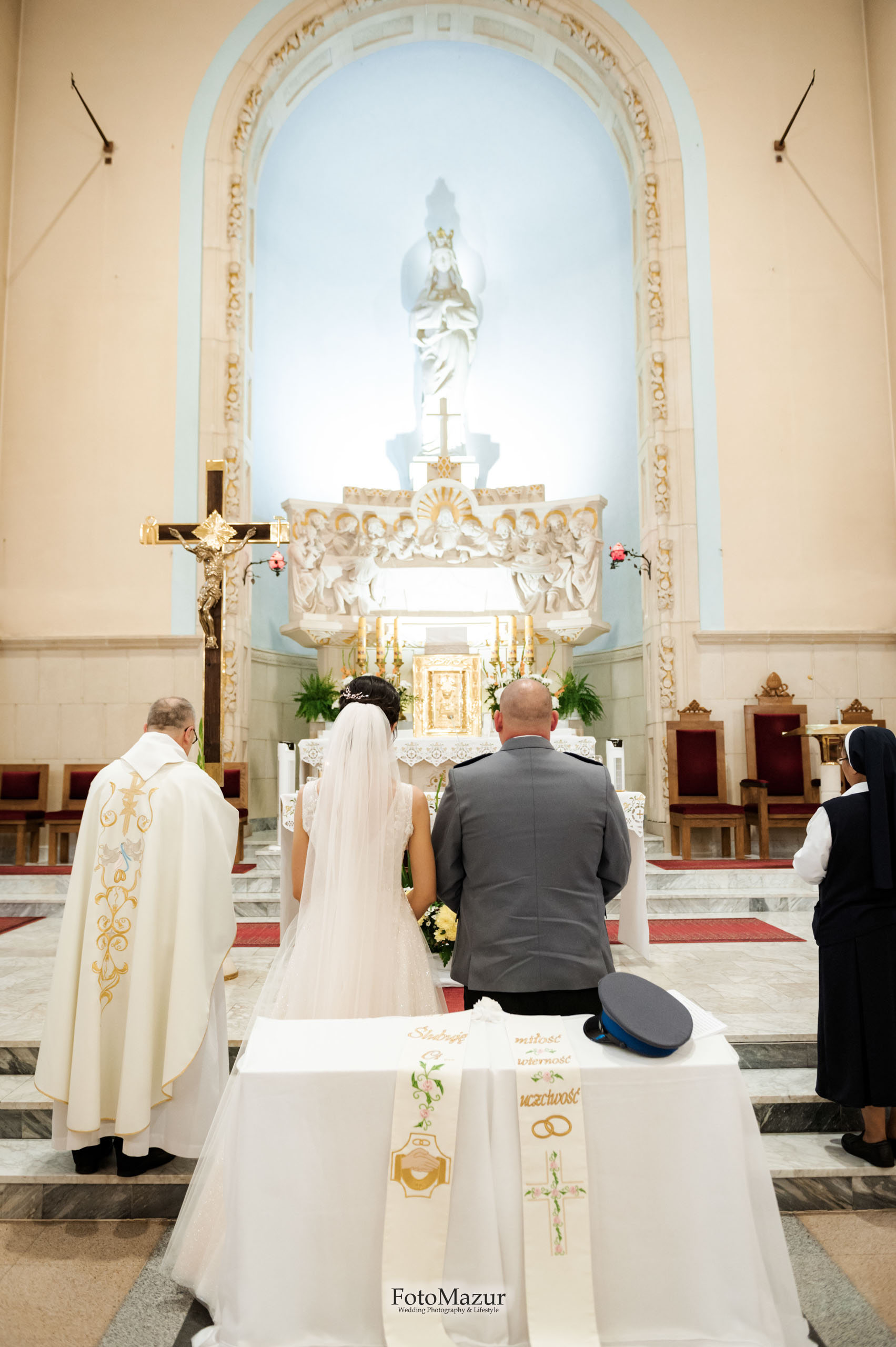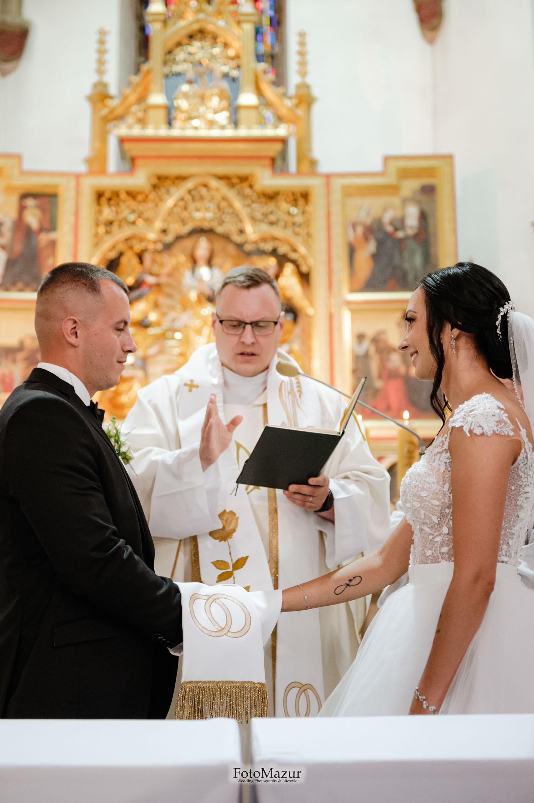 Trzeba także podkreślić, że w FotoMazur traktujemy ceremonię ślubną z najwyższym szacunkiem i pełnym poszanowaniem dla przysięgającej sobie miłość i wierność Pary Młodej. Dbamy o to, aby nasze fotografie emanowały powagą, a jednocześnie były pełne ciepła i naturalnych emocji. Nasze doświadczenie w fotografii ślubnej pozwala nam uchwycić chwile, które zawsze będą budziły wzruszenie i radość, kiedy para młoda będzie do nich powracała w przyszłości…