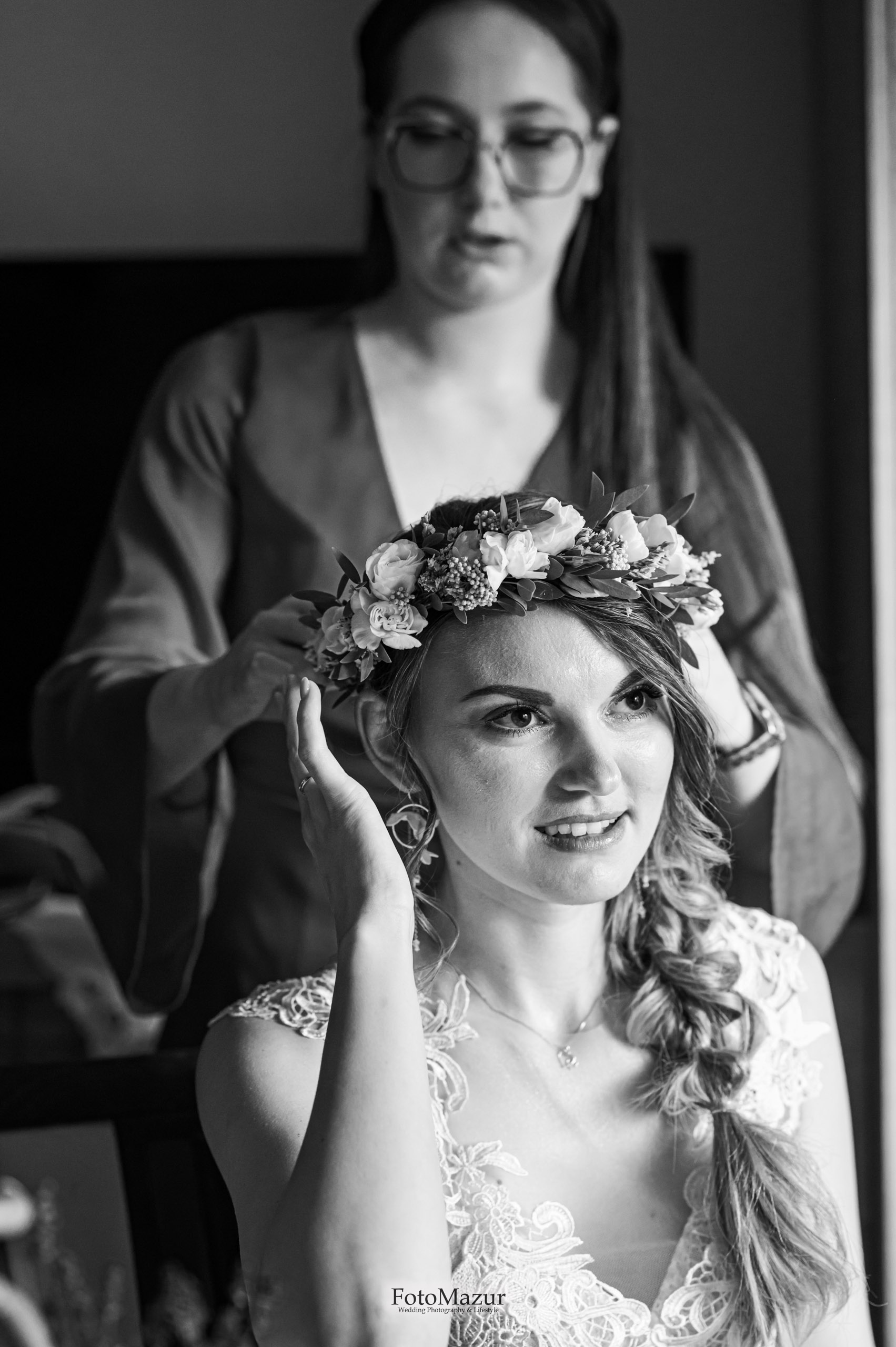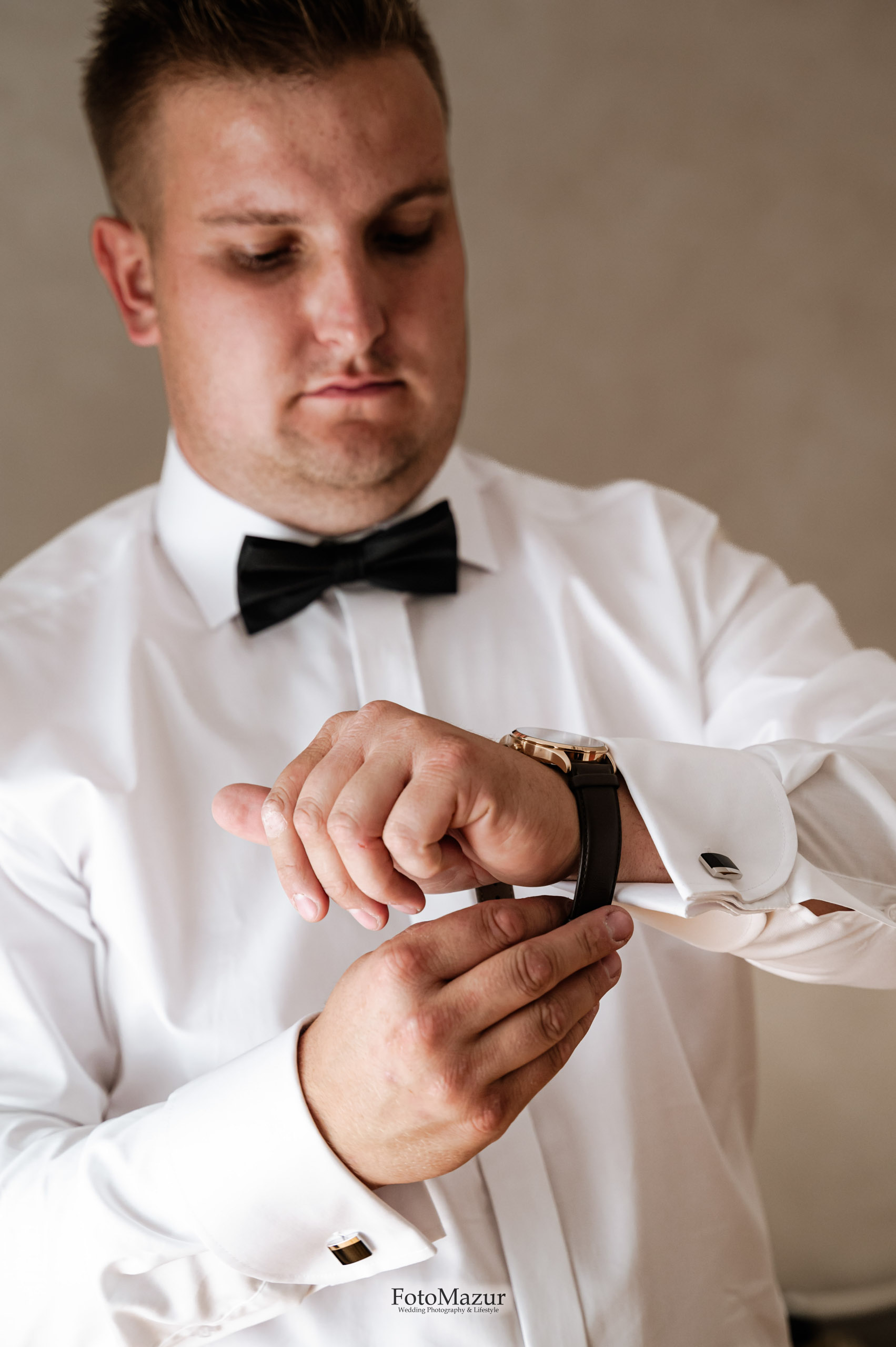 Przygotowania przed ceremonią ślubną stanowią wyjątkowy moment, pełen emocji, napięcia i radości, który zasługuje na uwiecznienie na pięknych fotografii. To chwila, w której Młoda Para, otoczona bliskimi przyjaciółmi i rodziną, przechodzi przez rytuał ubierania się, czesania, a także ostatnich poprawek w makijażu, aby podczas całego dnia doskonale wyglądać. Przygotowania mogą nieć również wymiar symboliczny, który warto uwiecznić na zdjęciach, by później móc wracać do tych ostatnich chwil jako narzeczeni.
